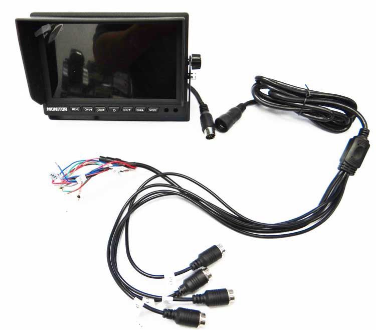 The MOSS-D7004Q Monitor gives the driver a view of 4 cameras at the same time. The video feeds are displayed on four quadrants on the screen. The sturdy housing and solid mounting bracket make this 7 inch monitor perfect for large vehicles such as buses, tractor trailers. and even heavy machinery.