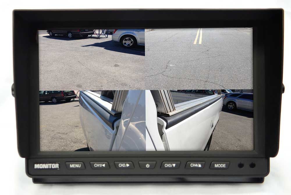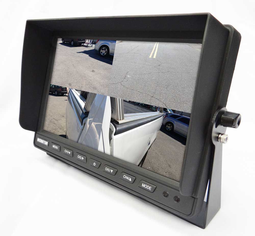 The MOSS-1004Q Monitor gives the driver a view of 4 cameras at the same time. The video feeds are displayed on four quadrants on the screen. The sturdy housing and solid mounting bracket make this 7 inch monitor perfect for large vehicles such as buses, tractor trailers. and even heavy machinery.